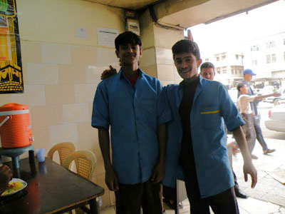 | 基本はスーツ姿ですが、たまに民族衣装の時も | 陽気なレストランの店員たち | |